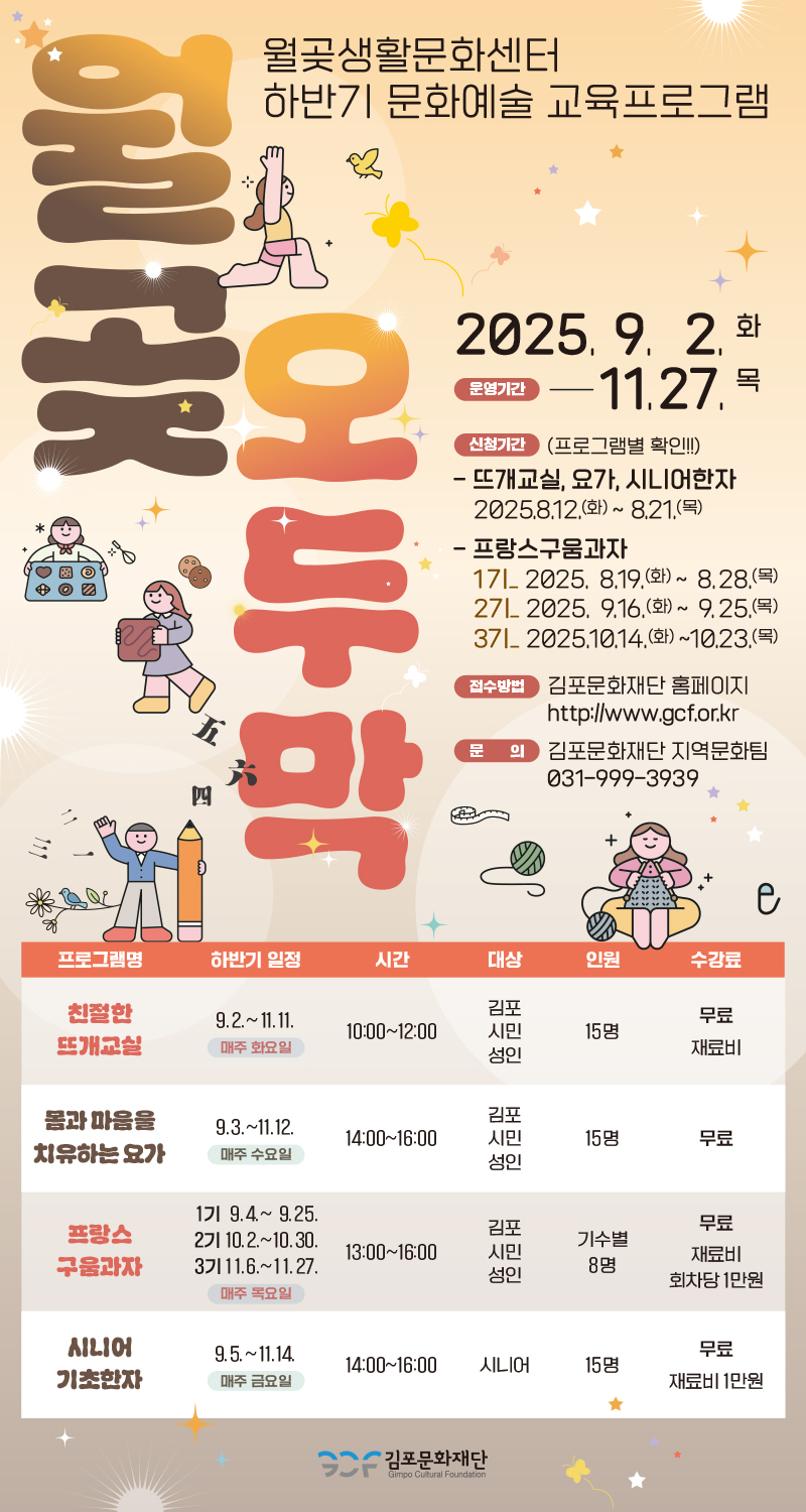 2025 월곶생활문화센터 하반기 교육프로그램 참여자 모집
