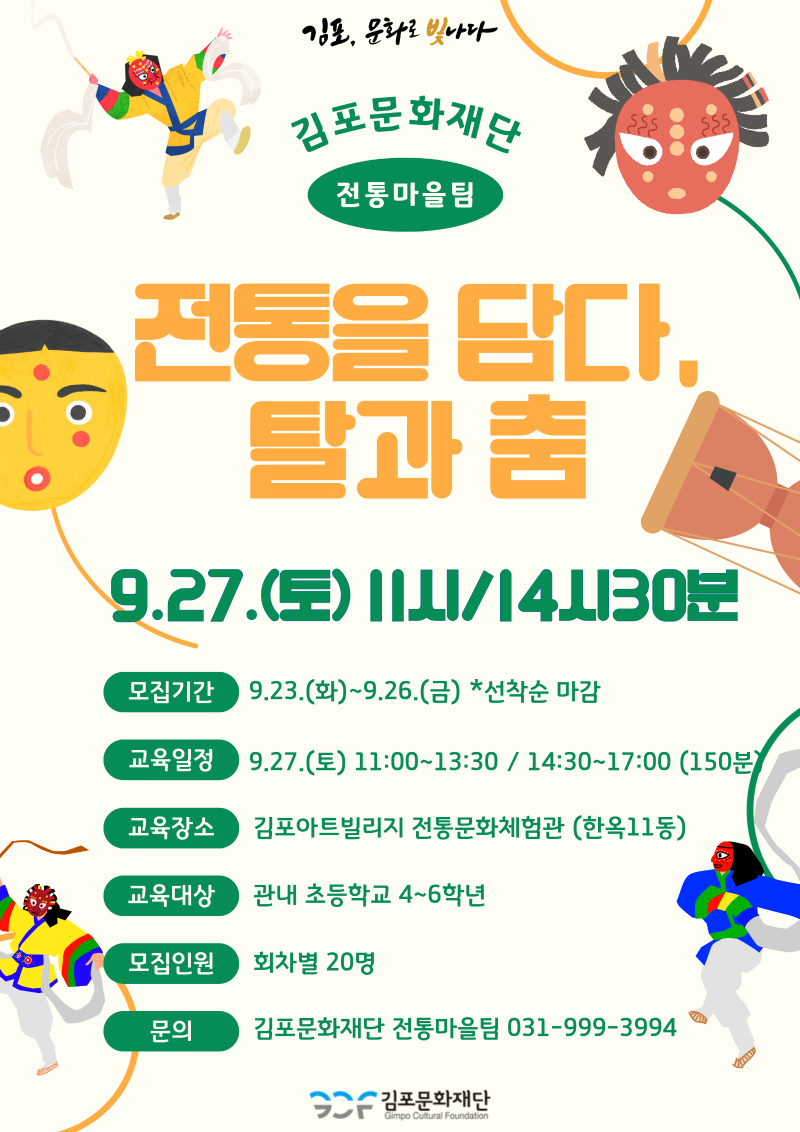 초등학생 여러분이 직접 ✨탈을 만들고, 🥁장단에 맞춰 춤을 배우며, 함께 즐기는 🎉 탈춤 한마당에 참여해 보세요!