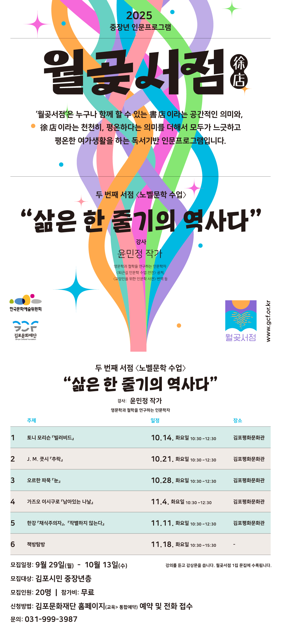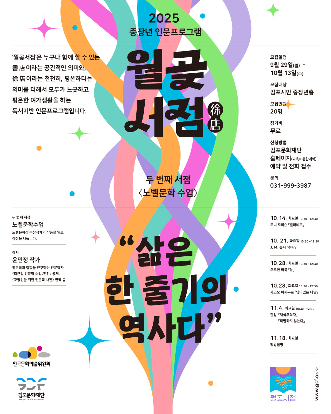2025년 월곶생활문화센터 중장년 인문프로그램 [월곶서점]-두번째 서점 <노벨문학 수업>