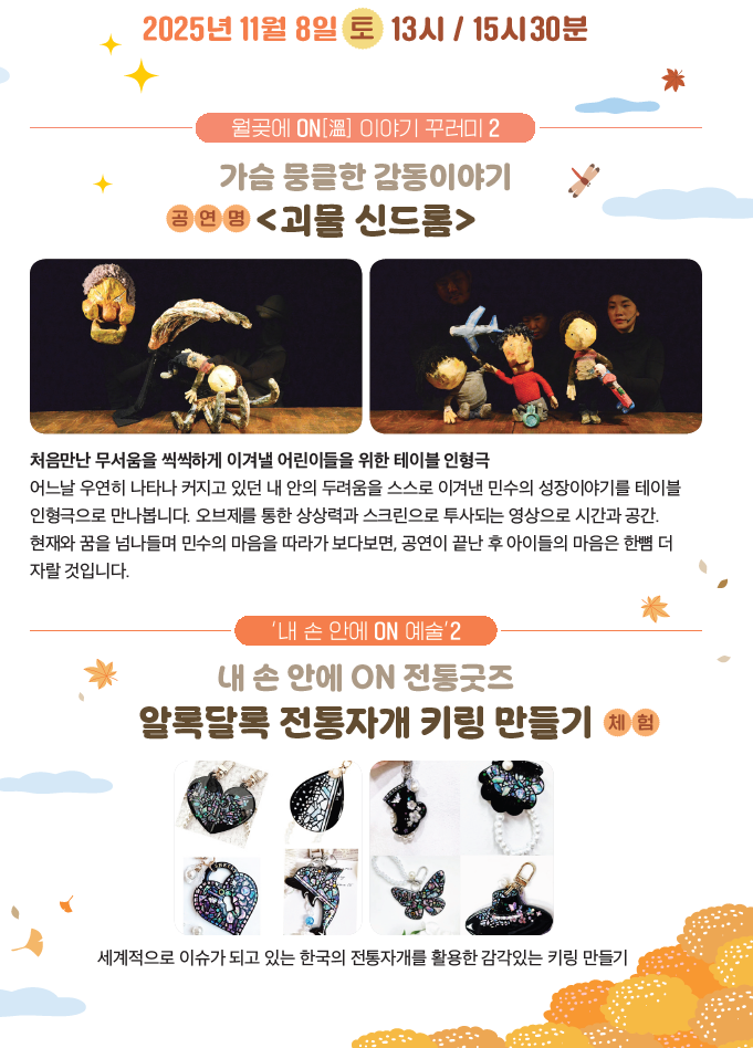 ♦ 일정 : 2025. 11. 8.(토) 1회차 13:00 ~ 14:30/ 2회차 15:30~17:00