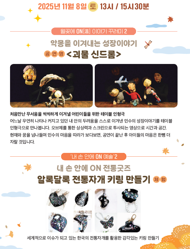 ♦ 일정 : 2025. 11. 8.(토) 1회차 13:00 ~ 14:30/ 2회차 15:30~17:00