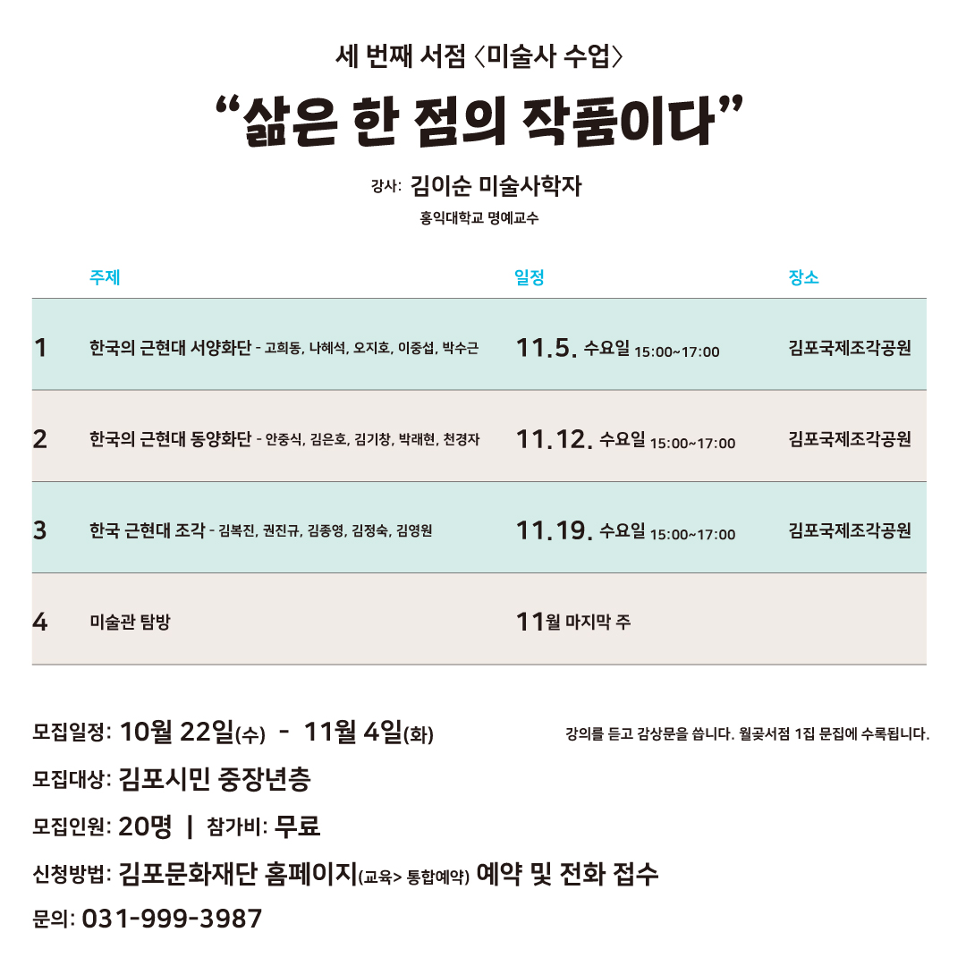 2025년 월곶생활문화센터 중장년 인문프로그램 [월곶서점]-세번째 서점<미술사>