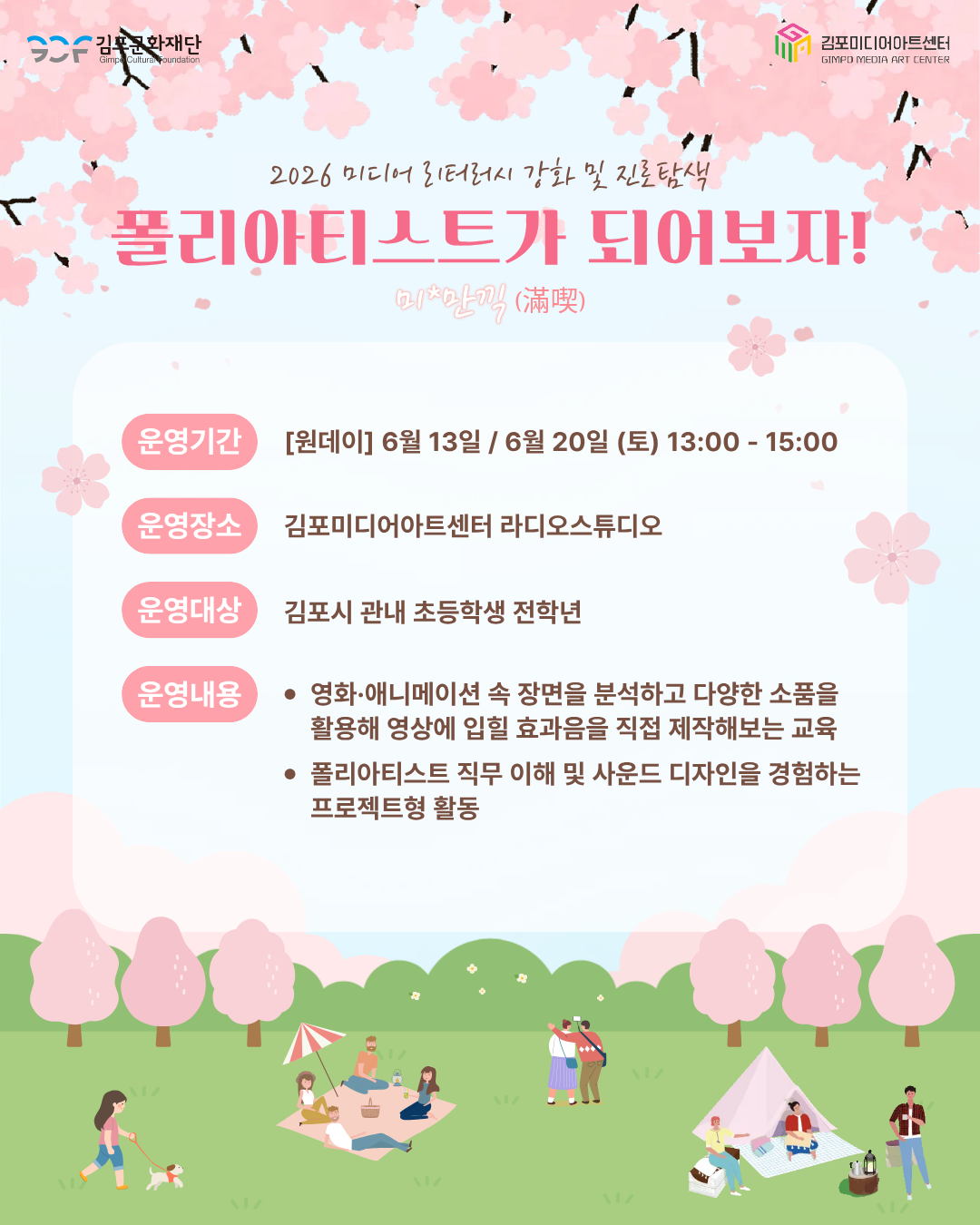 *신청사이트 : 김포미디어아트센터 홈페이지 https://www.gcf.or.kr/gmac/edu/list.do