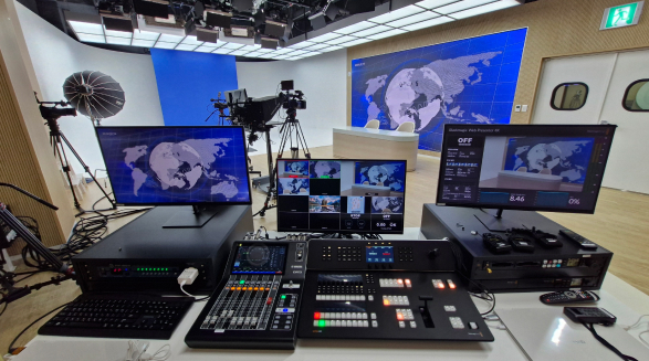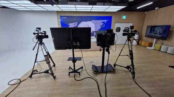 카메라, 스위쳐, 크로마키 등 영상 장비를 이용해 촬영 및 송출이 가능한 공간입니다. 뉴스, 기상캐스터 등 방송 제작 과정을 체험할 수 있습니다.