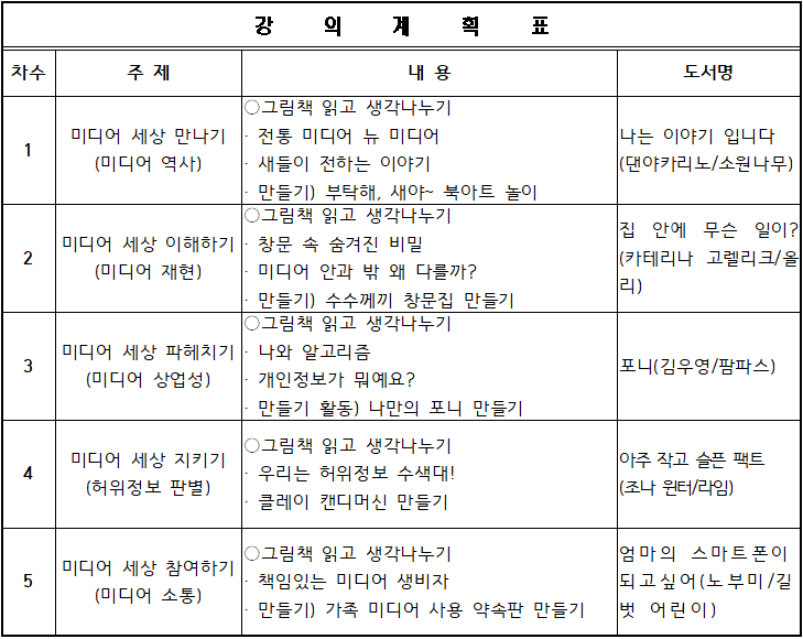 *교육포인트 : 엄마 아빠와 함께 그림책 속에 숨겨진 미디어 세상을 알아보는 시간!(5회차 마지막날, 특별한 이벤트가 준비되어 있어요!)