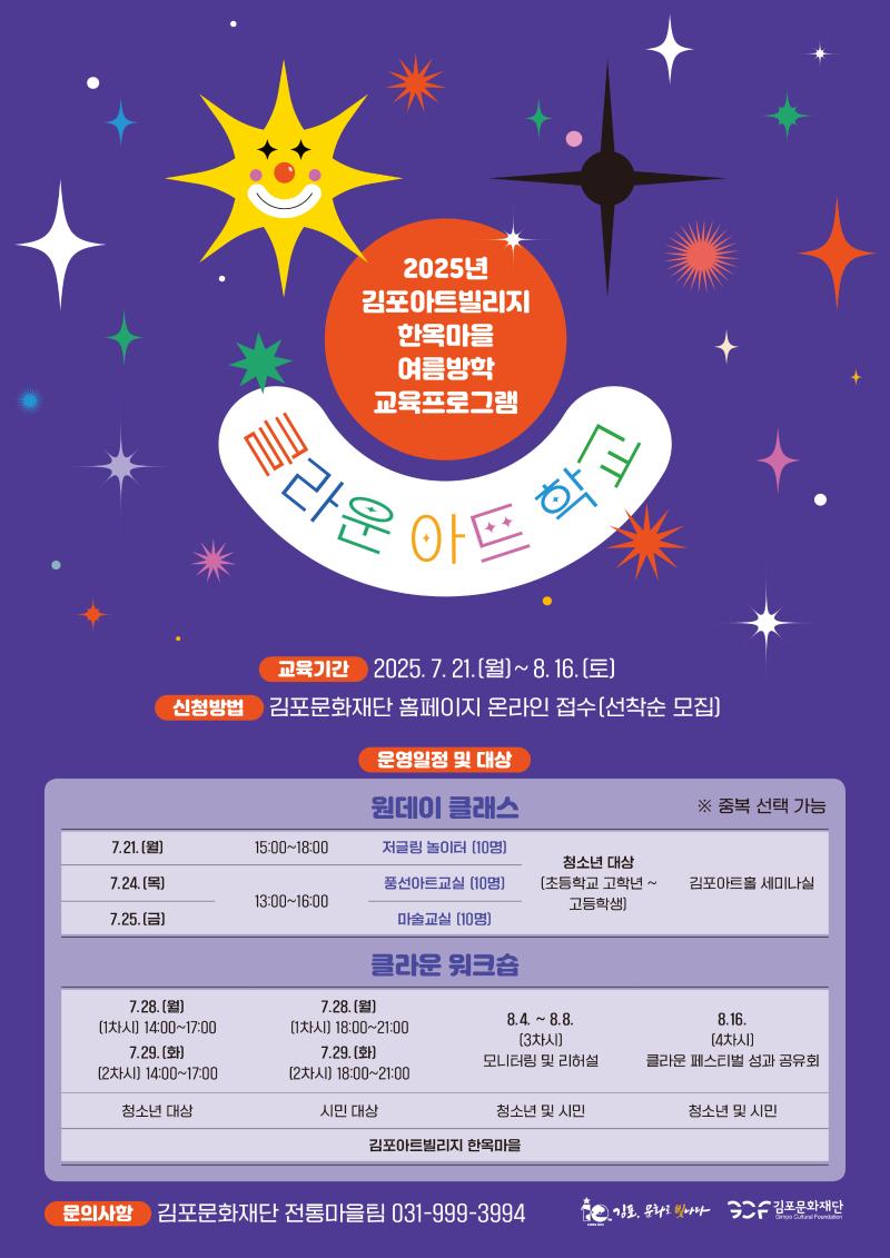 | 운영기간 | 2025-07-21 ~ 2025-08-16 | 요일 | 프로그램별 상이 |