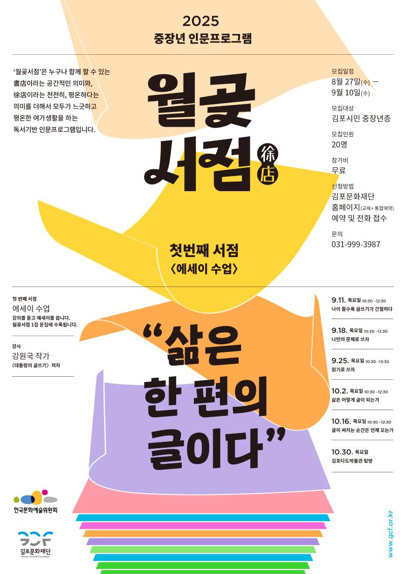 | 프로그램명 | 2025 월곶생활문화센터 중장년 인문프로그램 [월곶서점]- 첫번째 서점 <에세이 수업> | ||