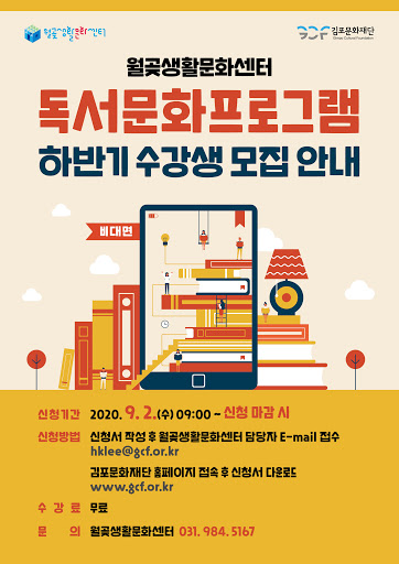 | 프로그램명 | 2020 월곶생활문화센터 하반기 독서문화프로그램 수강생 모집 | ||
