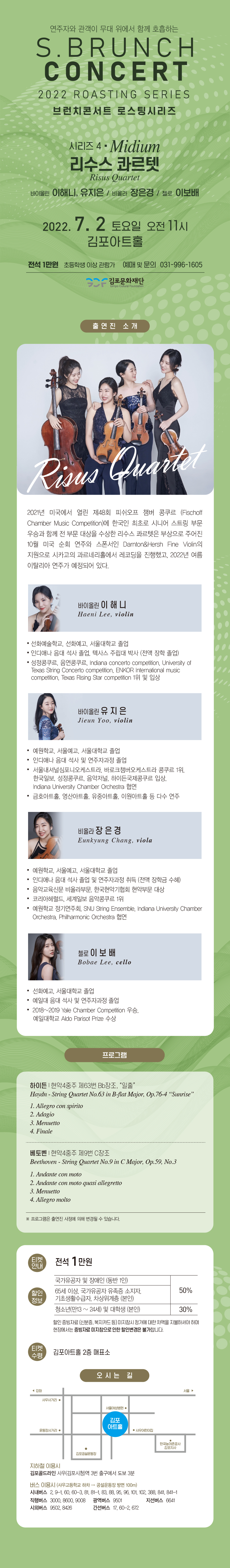 토요 브런치 콘서트 - 로스팅 시리즈 4 〈리수스 콰르텟〉