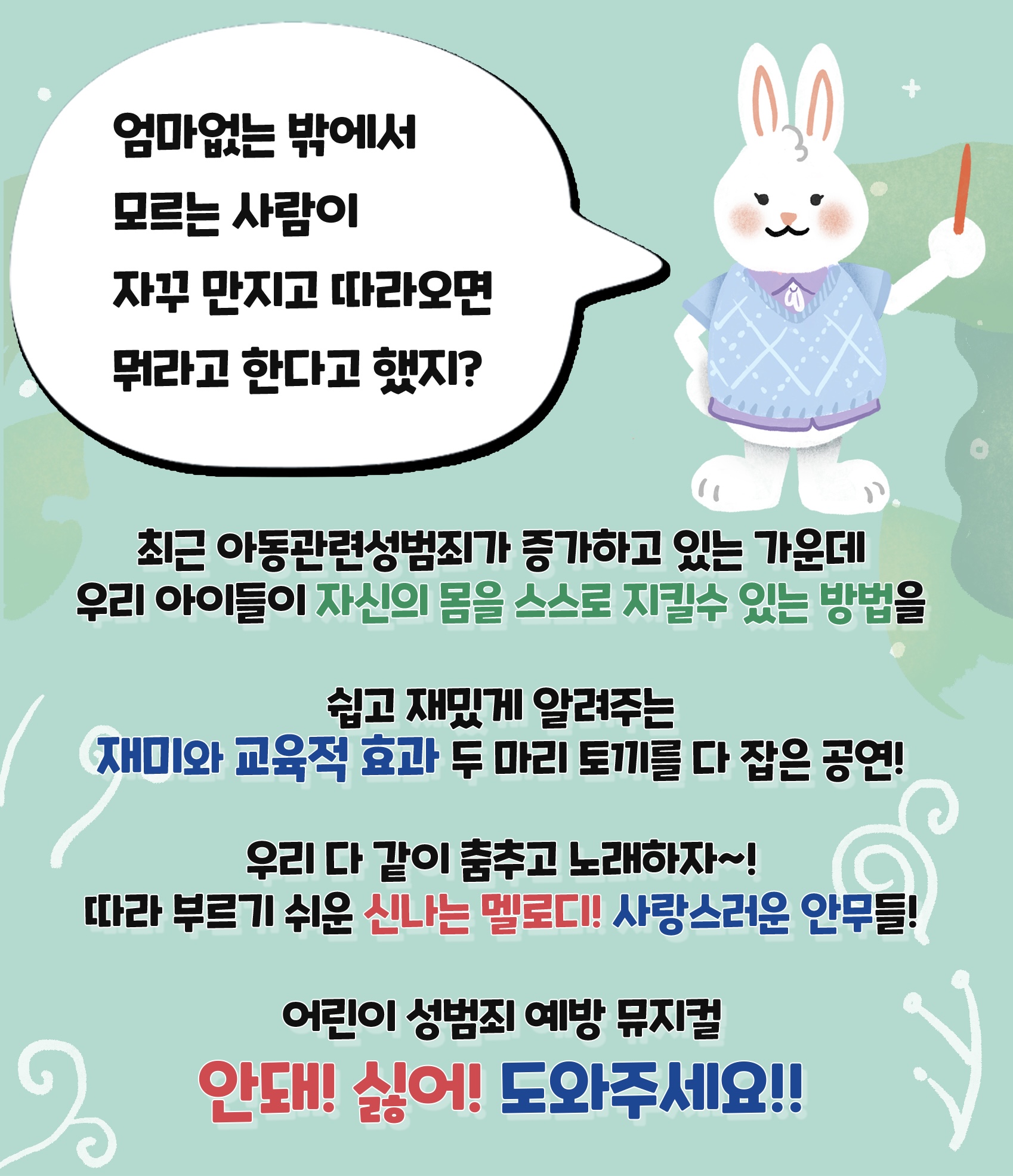 [2022 경기예술활동지원 '모든예술31'] 어린이 성범죄 예방 뮤지컬 안돼! 싫어! 도와주세죠!!