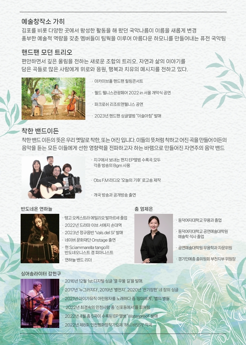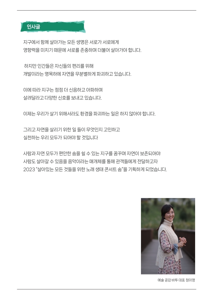 [2023 김포예술활동지원사업 지원작] 2023 살아있는 모든 것들을 위한 노래 생태 콘서트 "숨"