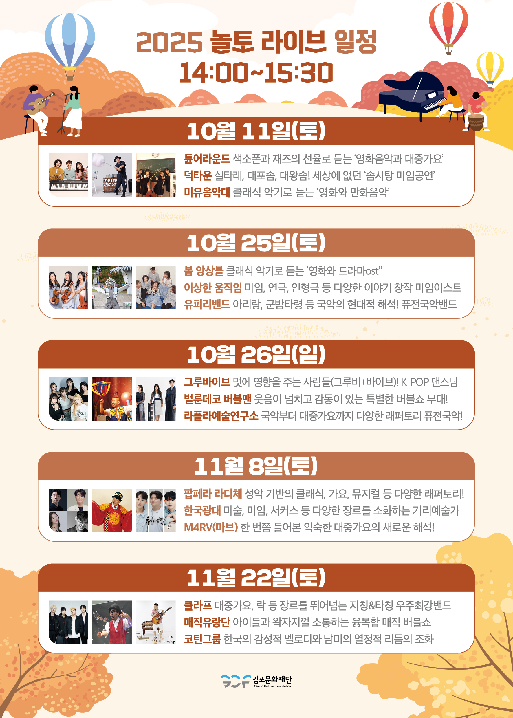 📣 10월 25일(토), 10월 26일(일)은 문화가 있는 주말 특별공연으로 주말 이틀 간 운영