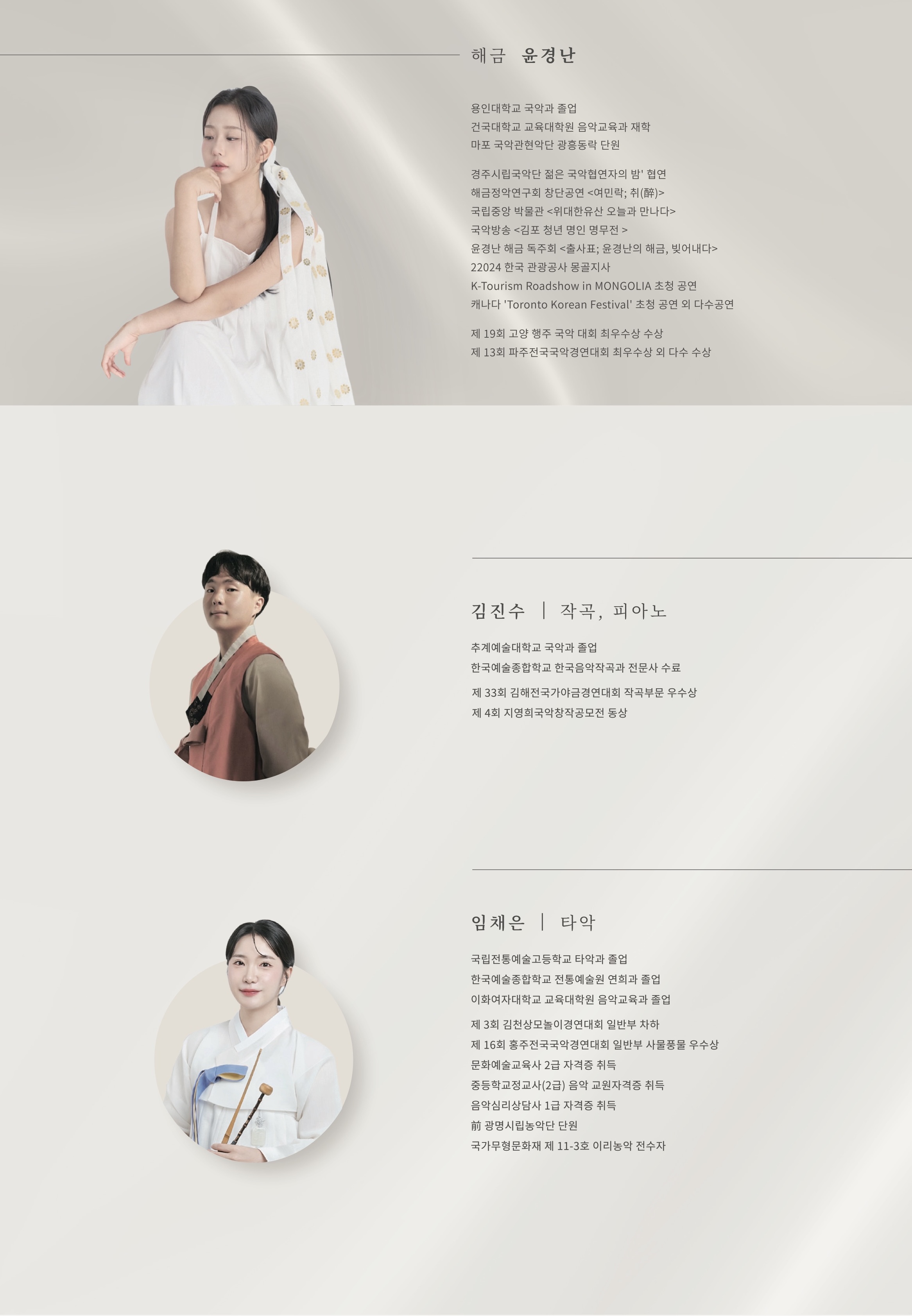 출연: 윤경난(해금), 김진수(작곡·피아노), 임채은(타악)