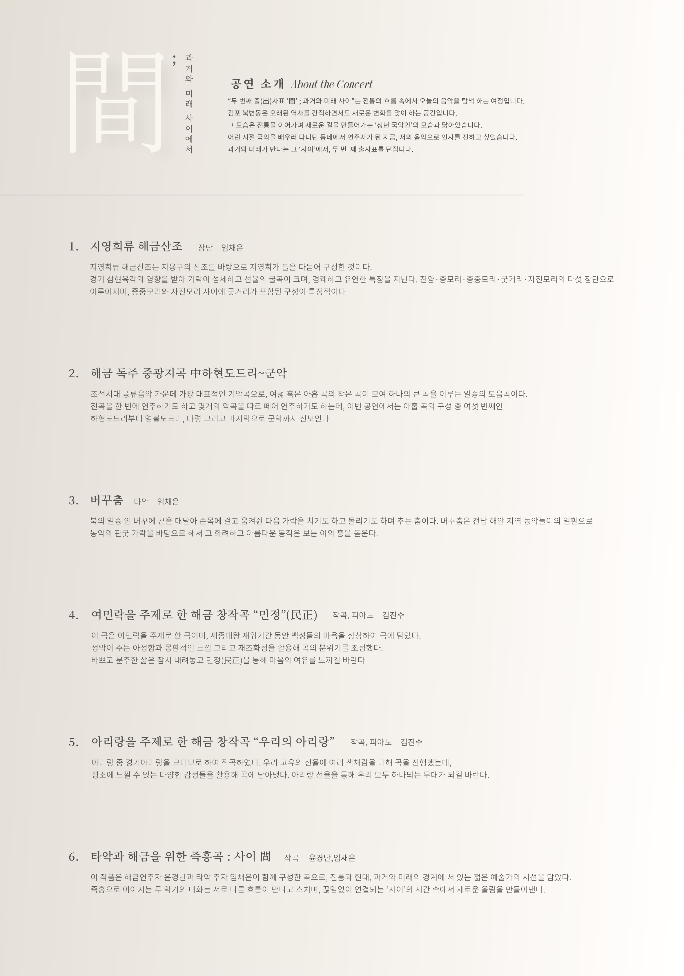 창작곡 ‘민정(民正)’ / 창작곡 ‘우리의 아리랑’ / 즉흥곡 ‘사이(間)’