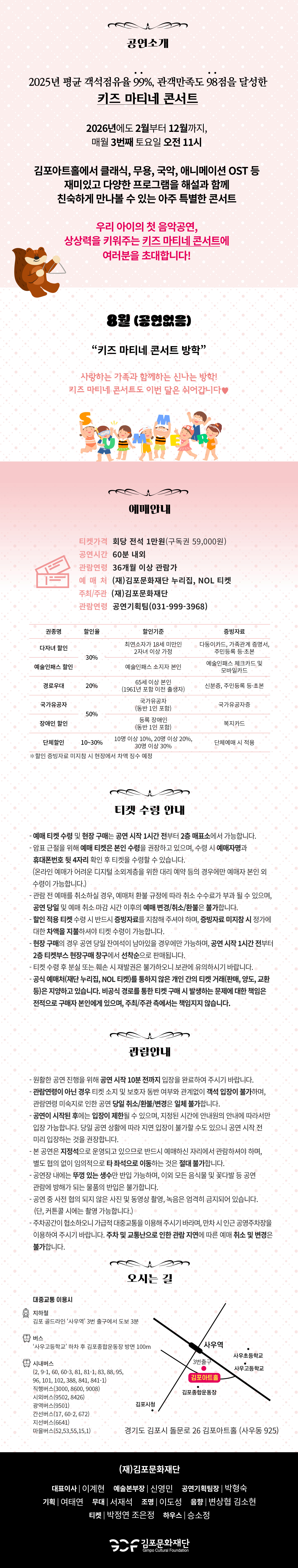 키즈 마티네 콘서트 - 8월 <키즈 마티네 콘서트 방학> (공연없음)