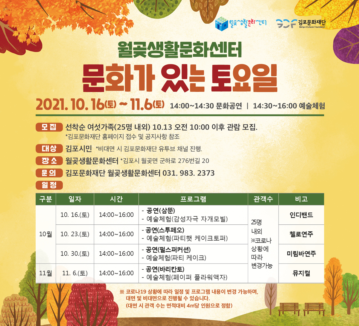 월곶생활문화센터 4분기 <문화가 있는 토요일>
