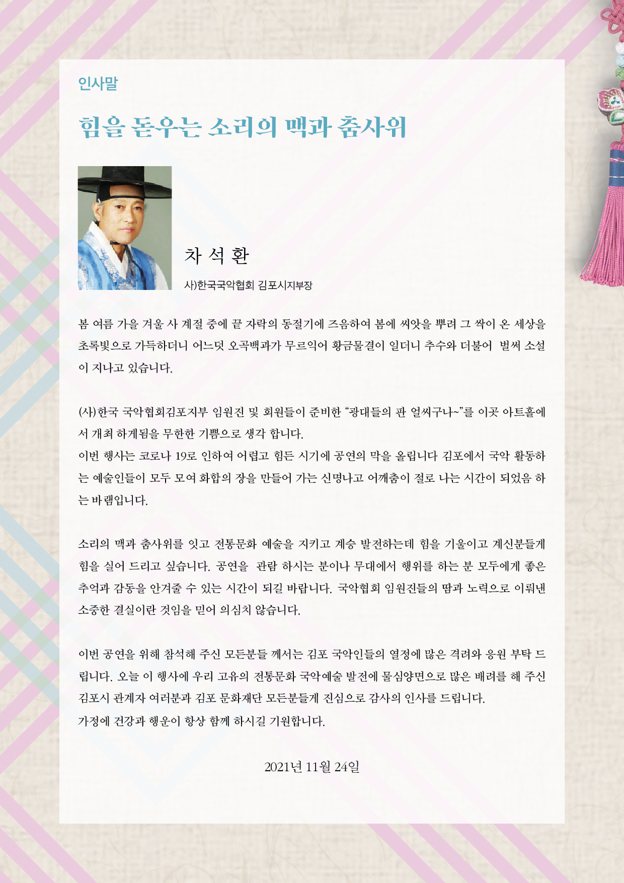 ※ 본 공연은 '경기도 문화의 날, 지역화폐 드림사업' 에 따라 관람권 구매금액의 일부를 지역화폐(김포페이)로 환급받으실 수 있습니다. (환급관련 문의 : 031-996-1605)