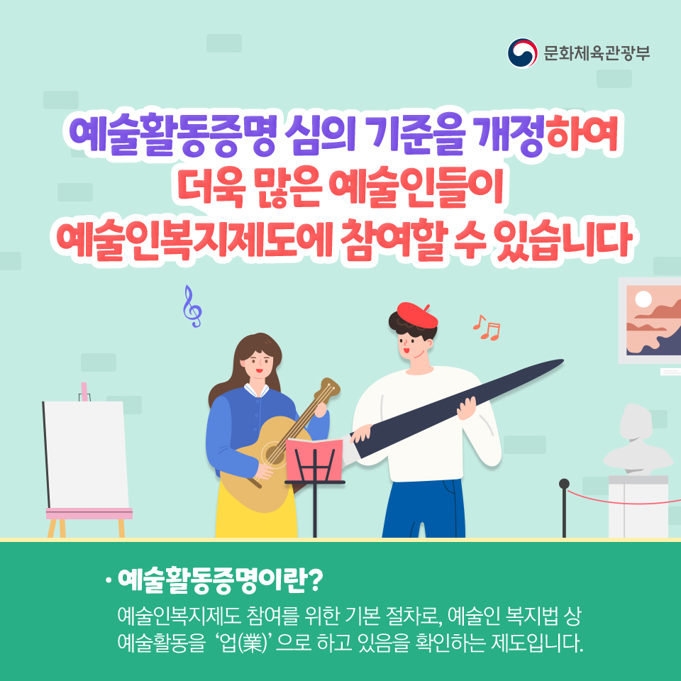 문화예술소식 문화체육관광부 | 예술활동증명 운영지침 개정