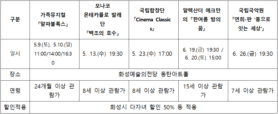화성시문화관광재단ㅣ화성예술의전당 상반기 기획공연 안내
