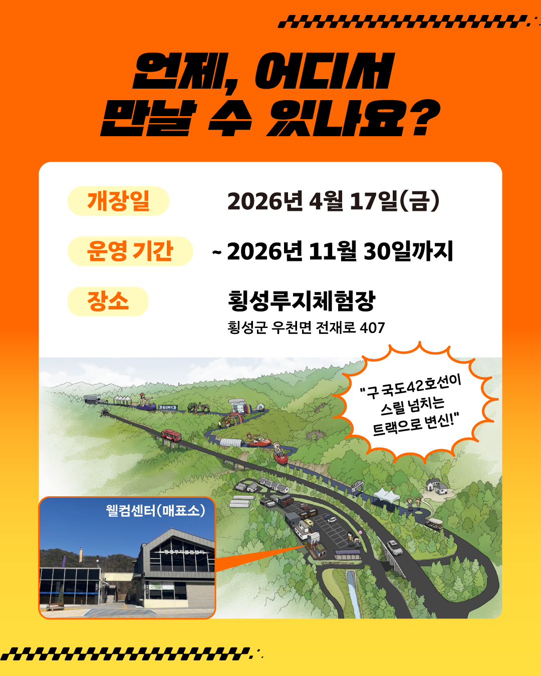 (재)횡성문화관광재단에서는 차별화된 레저 콘텐츠를 널리 알리고, 횡성루지만의 역동적인 체험 기회를 제공하고자 「2026시즌 횡성 루지체험장」을 개장 합니다.