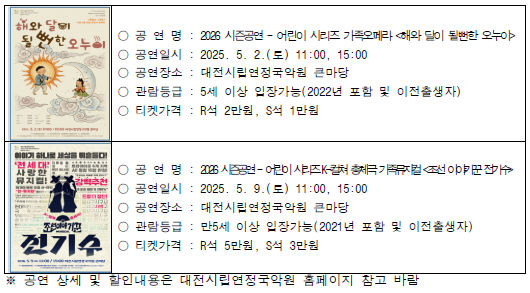 문화예술소식 대전시립연정국악원ㅣ5월 가족의달 기획공연