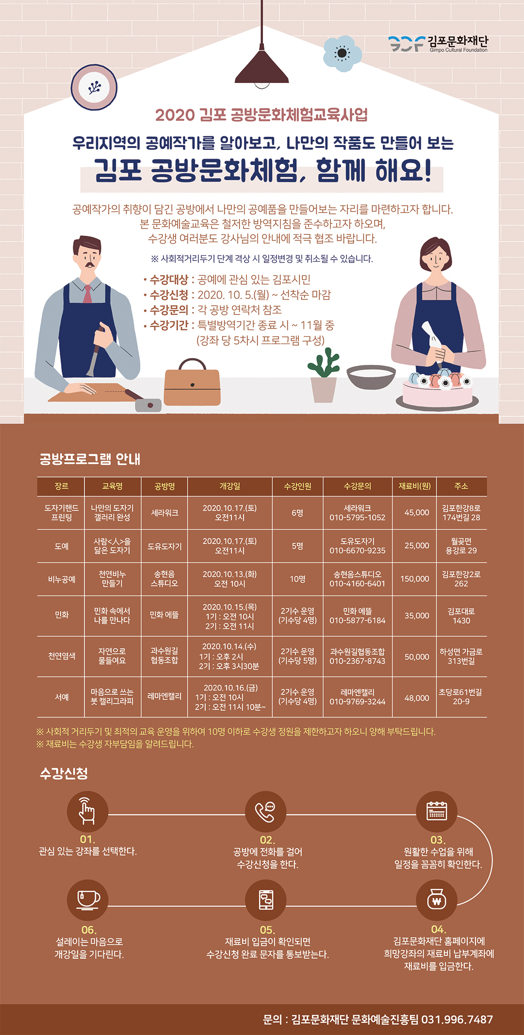 김포문화재단, 2020 공방문화체험교육 수강생 모집