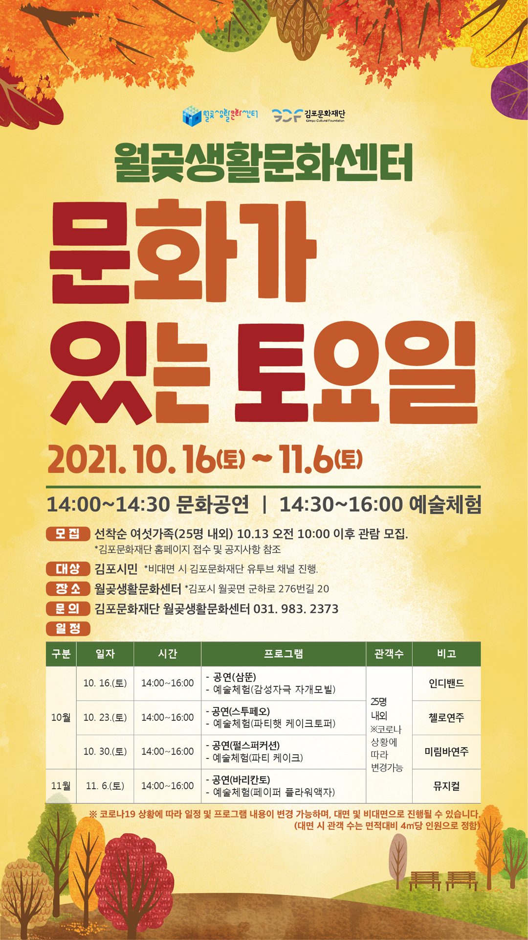 김포문화재단, 4분기 「문화가 있는 토요일」 개최