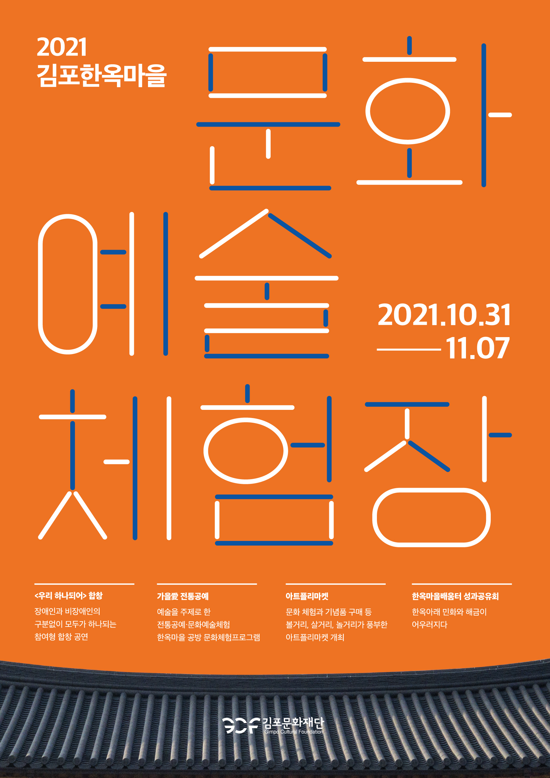 ![]() | 김포아트빌리지 문화예술 체험의 장, 장애인과 비장애인의 치유와 희망메세지로 문을 열다! (재)김포문화재단(이하 재단)은 오는 10월 31일 비장애인과 장애인이 함께하는 “김포 하나 되어 100인의 줌(ZOOM) 합창단” 프로젝트를 시작으로 11월 7일까지 ‘2021 김포한옥마을 문화예술체험장’을 운영한다고 밝혔다. 1. 장애인과 비장애인 함께하는 이음의 시간, 「김포 하나되어 100인의 줌 합창단」 2020년부터 시작된 코로나19 감염확산이 장기화 되면서 ‘코로나블루’라는 신종어가 생길 정도로, 사람간의 그리움이 고조되고 있다. 본 공연에서 울려퍼질 ‘우리 하나되어’라는 노래처럼, 이번 공연은 장애인과 비장애인이 음악을 통해 사회적 거리두기로 인한 만남의 경계를 허물고 서로를 보듬어줄 수 있는 비대면 합창프로젝트이다. 김포시민과 더불어, 노래를 부르는 이와 듣는 모든 사람이 이번 공연을 통해 따뜻한 위로의 메시지를 받을 수 있길 기대한다. 이밖에도 오프닝행사로 이색적인 이벤트와 공연을 즐길 수 있다. 본 합창단은 김포시민이면 누구나 참여가능하다. 장애인 50명, 비장애인 50명을 모집할 예정이며, 모집완료 후 연습은 비대면으로 진행된다. 자세한 사항은 재단홈페이지를 통해 공지할 예정이다. 2. 기와아래 볼거리, 놀거리, 즐길거리가 풍성한 전통문화체험장! 10월 31일부터 11월 7일까지, 일주일 동안 한옥마을에서는 현대적 디자인감각이 가미된 공예체험프로그램과 전통놀이 아트프리마켓을 진행한다. 공예체험프로그램으로 청년공예작가와 함께하는 △동양화시리즈 △수묵화시리즈 △동양자수 △복주머니만들기 △목판화 등 다채로운 공예클래스가 운영되며, 본 프로그램은 사전예약을 통해 참여할 수 있다. 그리고 주말에는 한옥마당에서는 △딱지만들기 △비석치기 △전통제기만들기 등 온가족이 함께 즐기는 전통놀이체험과 전통아트상품을 구입할 수 있는 전통놀이프리마켓 프로그램을 마련한다. 3. 전통문화로 힐링했던 한옥마을배움터, 의미있는 성과공유회 개최 재단은 올해 4월부터 한옥공간특화 전통문화예술교육프로그램을 운영해오고 있다. 이번 강좌 중 △민화로 꽃을 피우다 △해금으로 힐링하다 에 참여한 수강생이 아티스트가 되어, 다가오는 11월 4일, 한옥5동(前, 한옥스튜디오)에서 성과공유회를 개최할 예정이다. 민화작품전시와 해금연주시연을 통해 수강생의 성취감을 증진시키는 것은 물론이거니와 방문객에게 전통문화를 친숙하게 감상할 수 있는 자리가 될 것이다. 더불어, 김포에서 활동하는 인당 서진영 작가와 청전 이은미 작가가 장애아동가족과 함께 원데이클래스를 마련하여 의미 있는 성과 공유회를 선보일 예정이다. 이번 행사에는 특별방역기간 장기화로 얼어붙은 한옥마을 분위기를 녹여보고자 한옥마을과 아트센터에 입주한 공방과 카페, 매점이 방문객을 맞이하기 위해 대문을 활짝 연다. 공방에서 마련한 체험프로그램 참여를 희망하는 자는 공방으로 문의하면 된다. 끝으로 한옥마을은 시민에 열린 공간으로 찾아오는 방문객에게 영감과 힐링을 주는 문화예술교육, 행복한 추억을 선사하는 이벤트와 행사를 지속적으로 선보일 것으로 보여 기대해본다. 행사의 자세한 사항은 재단홈페이지(www.gcf.or.kr)에서 확인할 수 있다. |