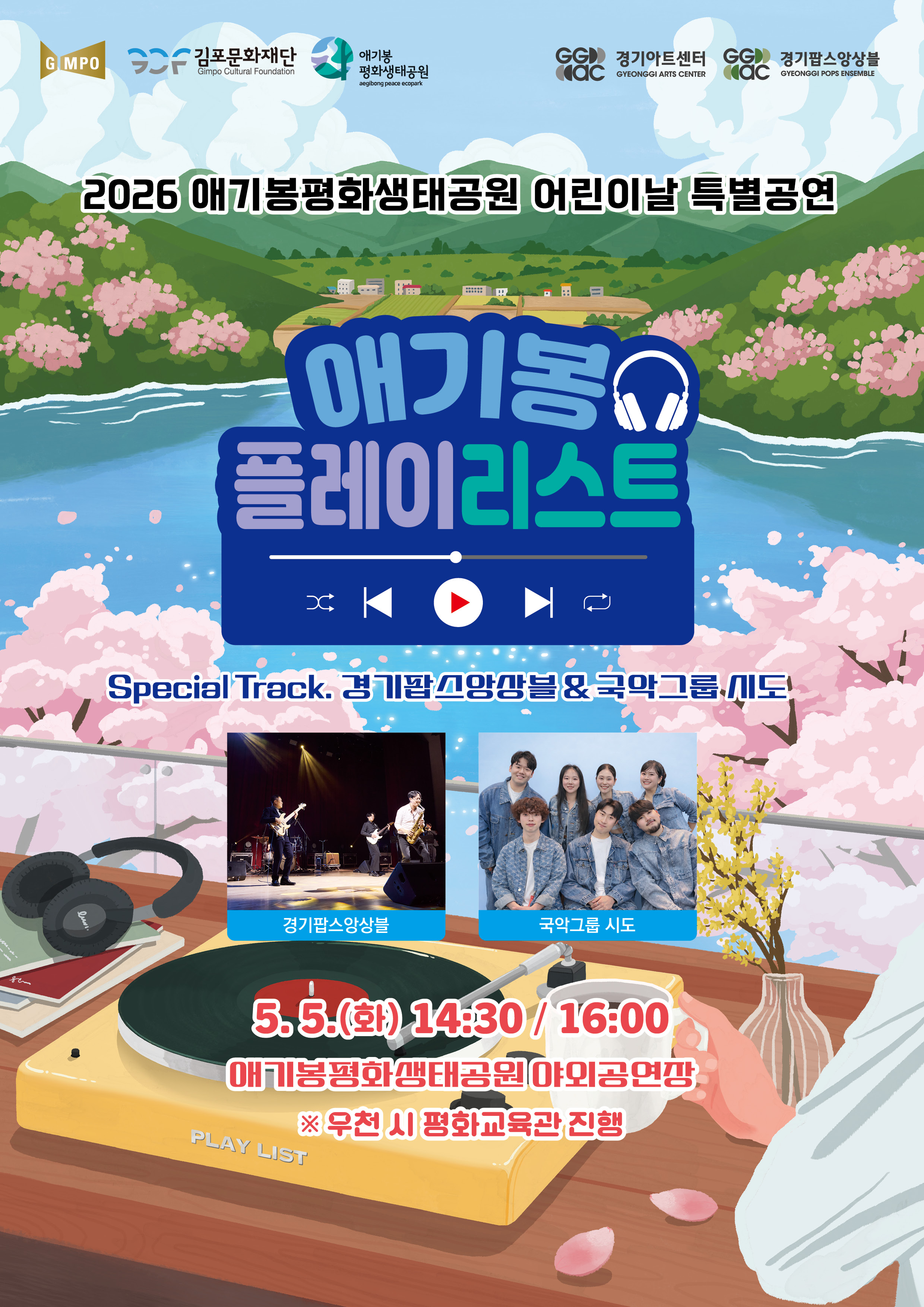 “어린이날, 애기봉에서 즐기는 특별한 문화예술 공연” - 김포문화재단, <애기봉 플레이리스트> 어린이날 특별공연 개최 - □ (재)김포문화재단은 오는 5월 5일(화) 어린이날을 맞아 애기봉평화생태공원 야외공연장에서 <애기봉 플레이리스트> 어린이날 특별공연을 개최한다고 밝혔다. □ 이번 공연은 경기아트센터에서 주관하는 ‘2026 경기도 어린이 축제 공연프로그램 지원사업’에 선정됨에 따라 어린이날을 기념해 온 가족이 함께 즐길 수 있는 문화예술 프로그램으로 마련됐다. □ 경기도예술단인 ‘경기팝스앙상블’과 도내 우수 민간 공연팀인 국악그룹 ‘시도’가 참여해 다채로운 무대를 선보일 예정이다. □ 공연은 오후 2시 30분 ‘경기팝스앙상블’의 무대로 시작된다. 경기팝스앙상블은 팝, 대중가요, 클래식 등 대중에게 친숙한 음악을 새로운 형태인 퓨전음악으로 편곡해 선보이며 가족단위 관람객에게 풍성한 음악적 즐거움을 선사한다. □ 이어 오후 4시에는 국악그룹 ‘시도’의 공연이 진행된다. ‘시도’는 2026년 경기아트센터 “찾아가는 문화복지 공연” 출연단체로 선정된 우수한 실력의 청년국악그룹으로, 교과서에 수록된 국악에서부터 밝고 에너지 넘치는 선곡으로 관람객들이 쉽고 재미있게 우리 음악을 접할 수 있는 무대를 선보일 계획이다. □ 김포문화재단 관계자는 “이번 공연은 경기도예술단의 수준 높은 공연과 도내 우수 민간 공연팀을 함께 선보이는 자리로, 어린이날을 맞아 가족 단위 관람객들에게 특별한 추억을 제공할 것”이라며 “앞으로도 애기봉평화생태공원 야외공연장을 중심으로 다양한 문화예술 프로그램을 지속적으로 확대해 나가겠다”고 밝혔다.