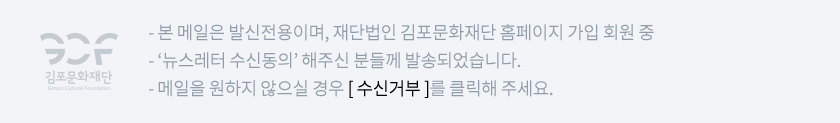 김포문화재단에서 발행하는 뉴스레터 발송을 위해 아래와 같은 개인정보를 수집합니다.