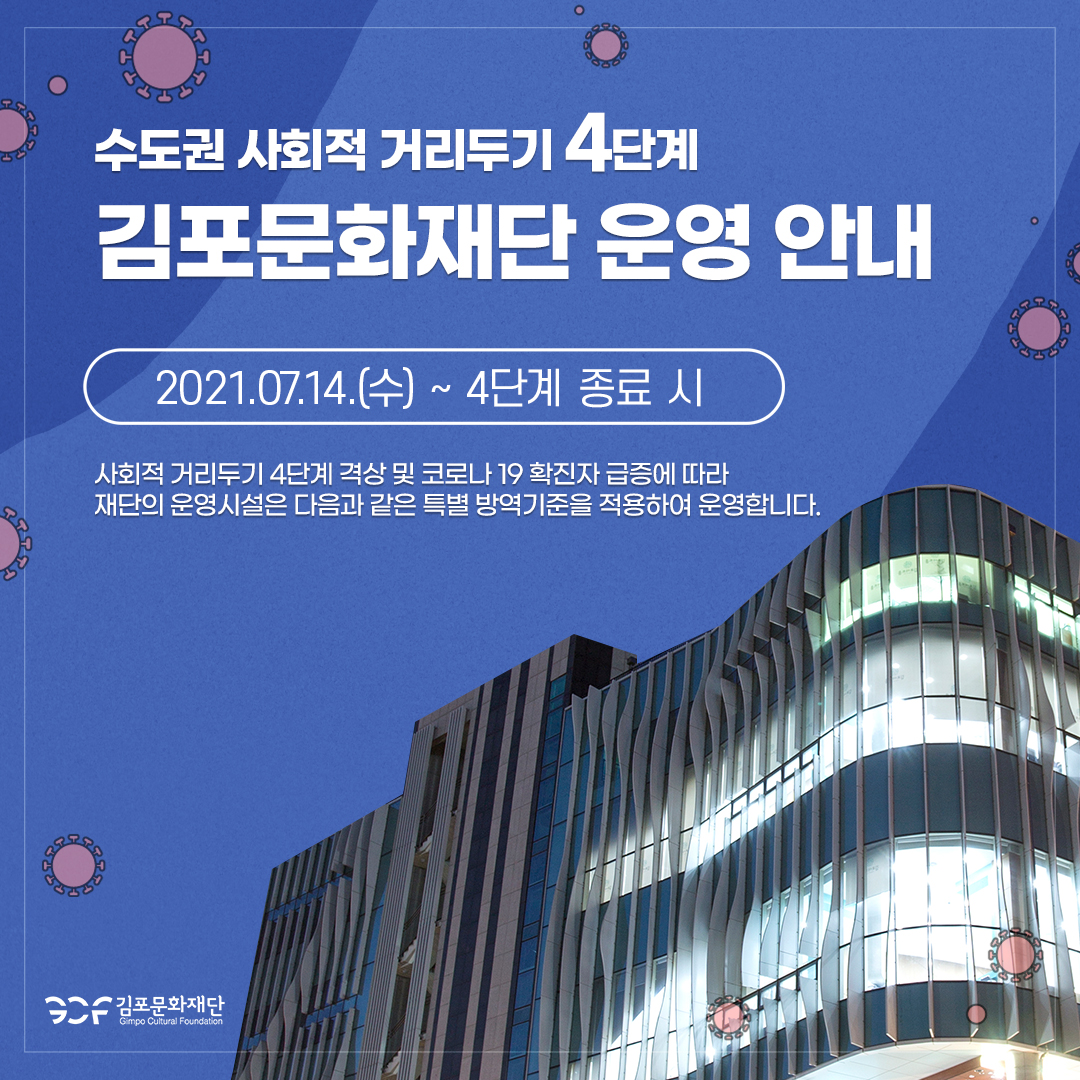 안내 [공지] 사회적거리두기 4단계 격상에 따른 '김포문화재단 운영 안내'