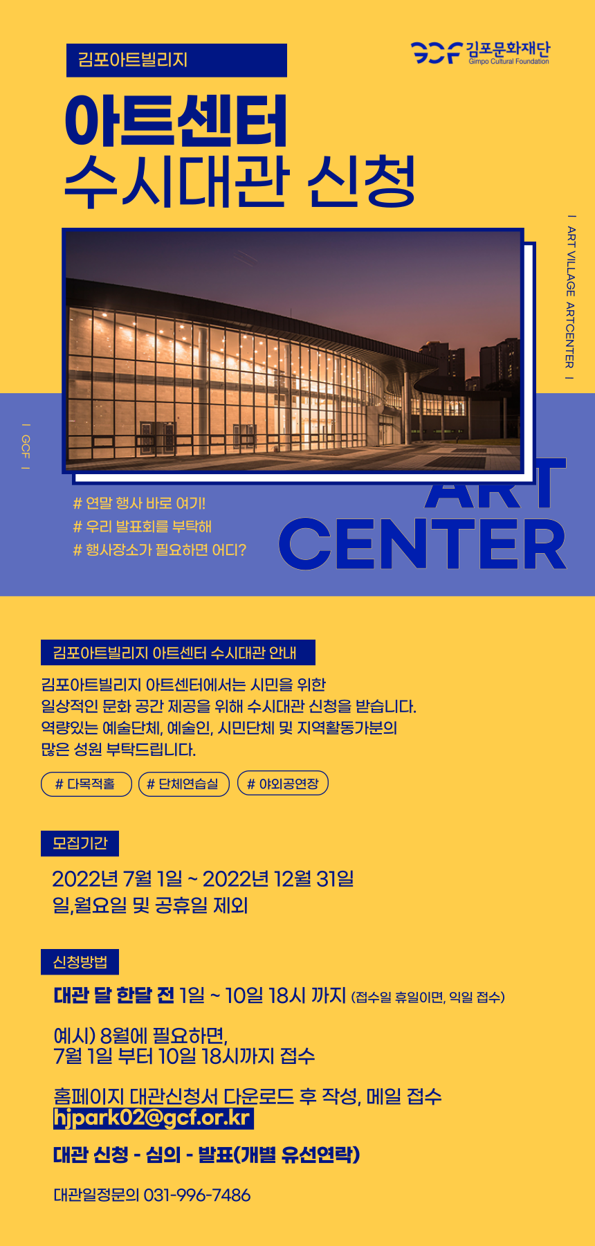 2022년 하반기 김포아트빌리지 아트센터 수시대관 안내
