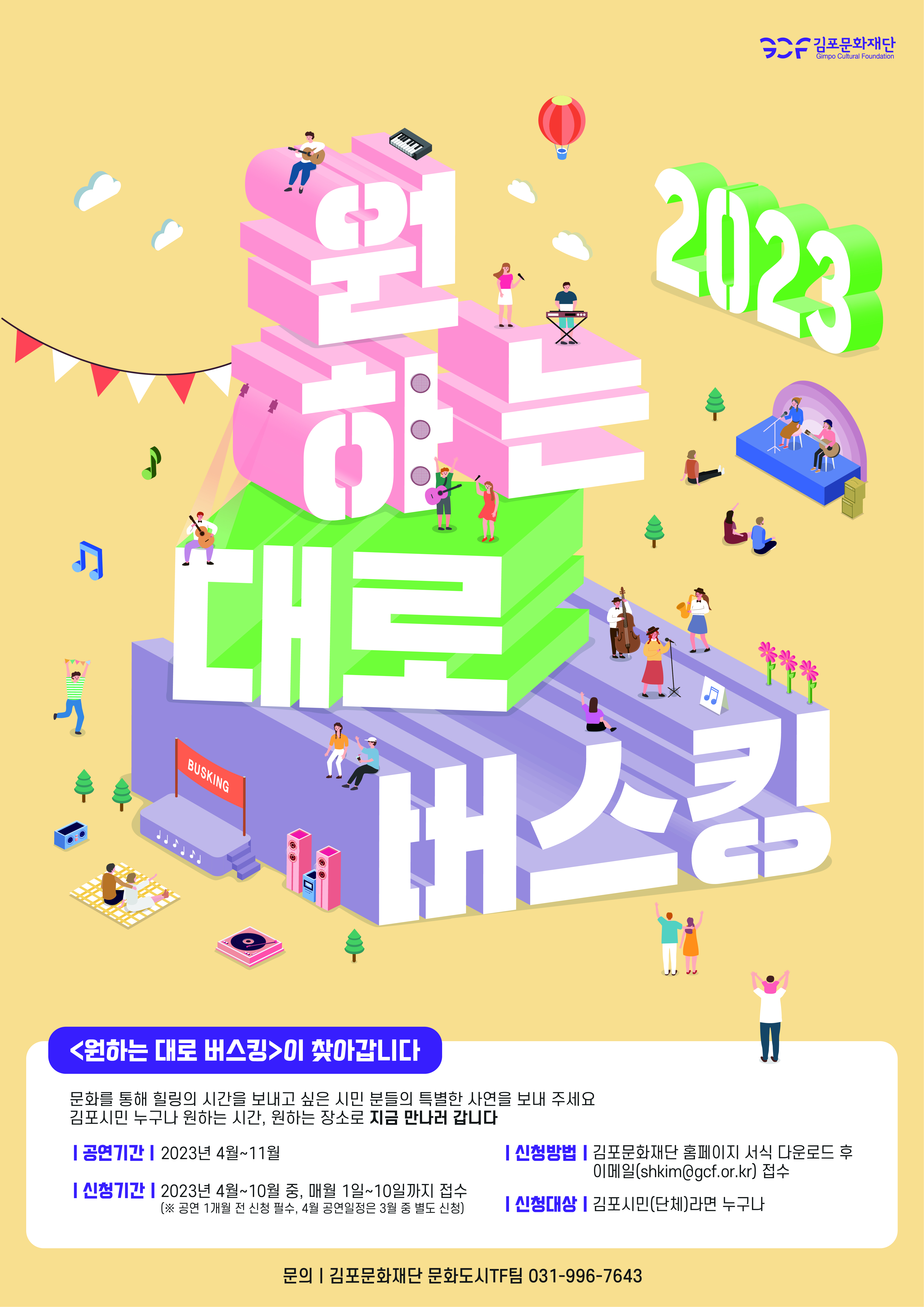 김포시민 누구나 원하는 시간, 원하는 장소에서 공연을 만날 수 있는 ‘아트 딜리버리’ <2023원하는대로 버스킹>이 찾아왔습니다.