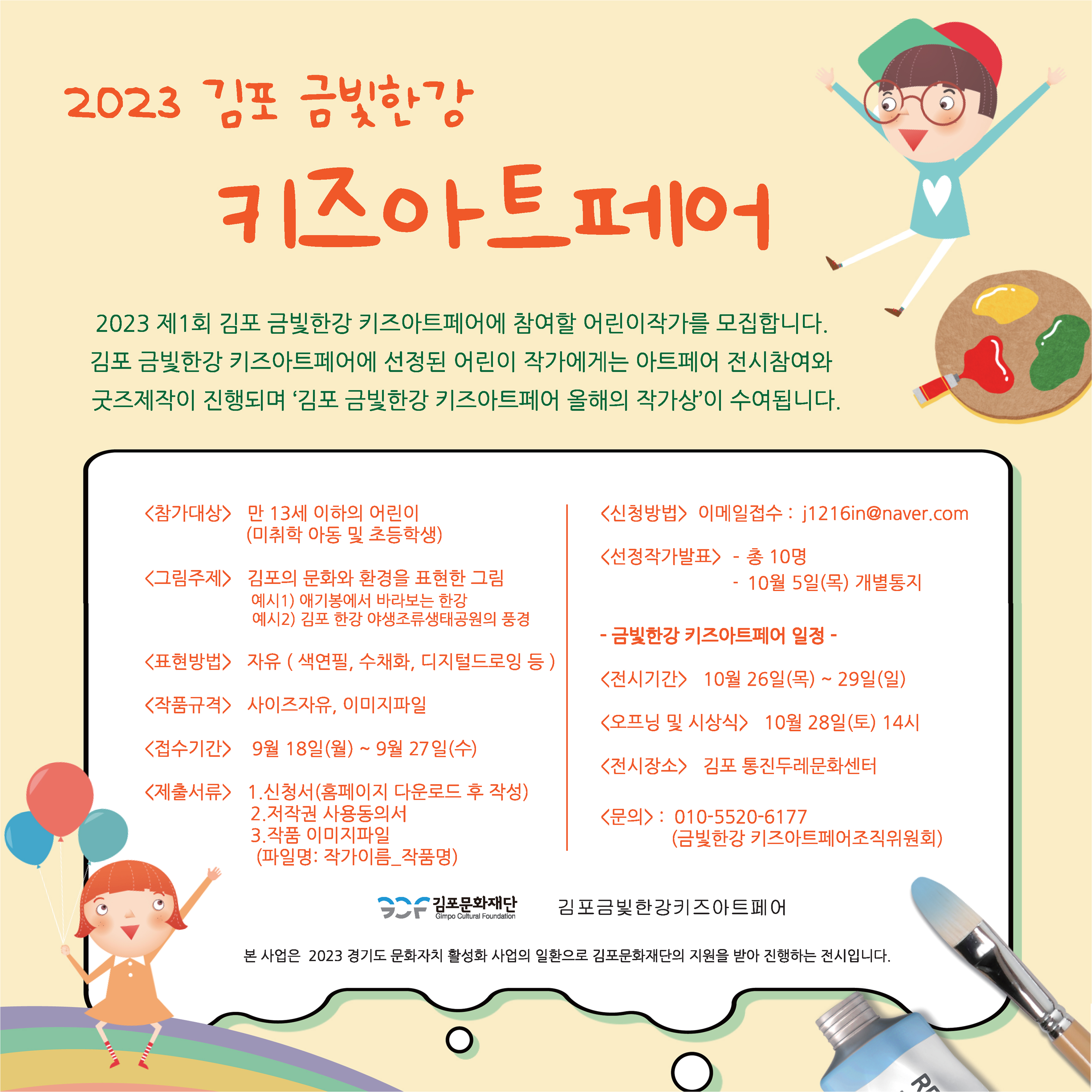 김포 문화자치 활성화 사업 <2023 김포 금빛한강 키즈아트페어> 참가자 모집