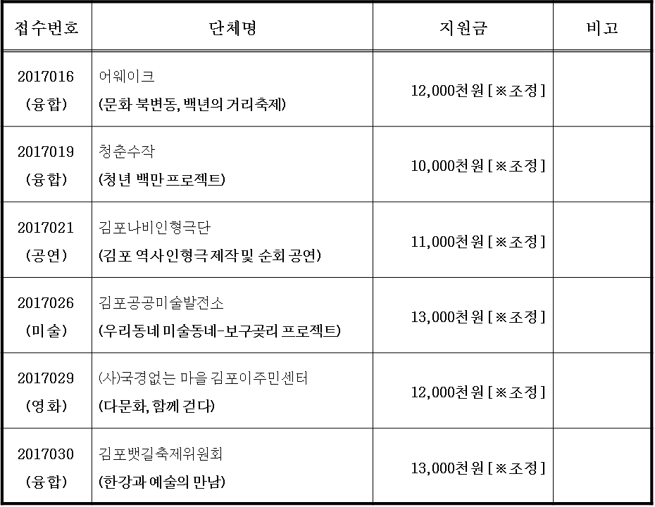 기타 2017년 김포 지역예술활동 공모지원사업 선정단체 공고
