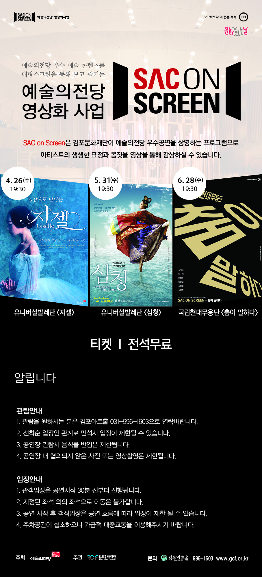 김포문화재단 SAC on Screen 우수공연 무료상영 안내