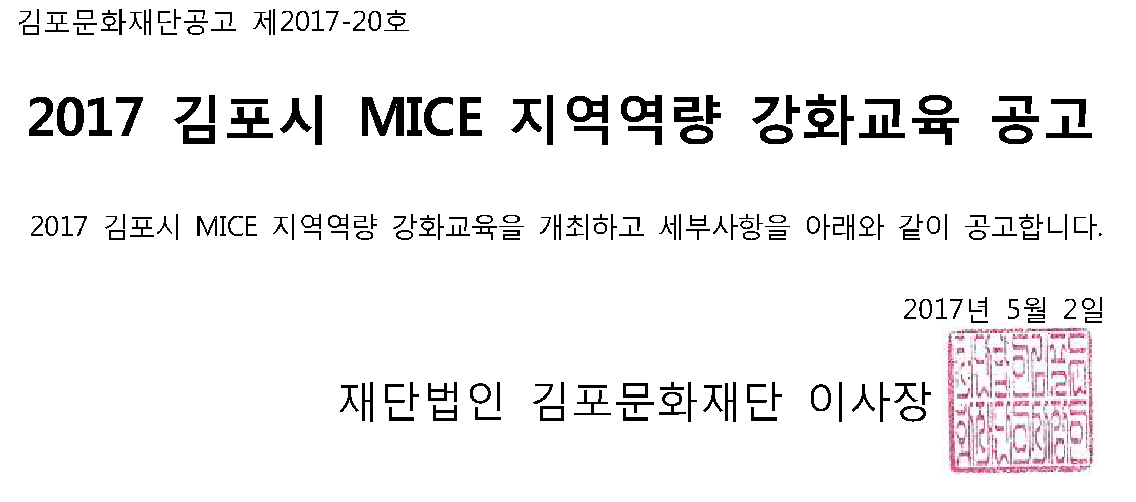 [공고] 2017 김포시 MICE 지역역량 강화교육 수강생 모집