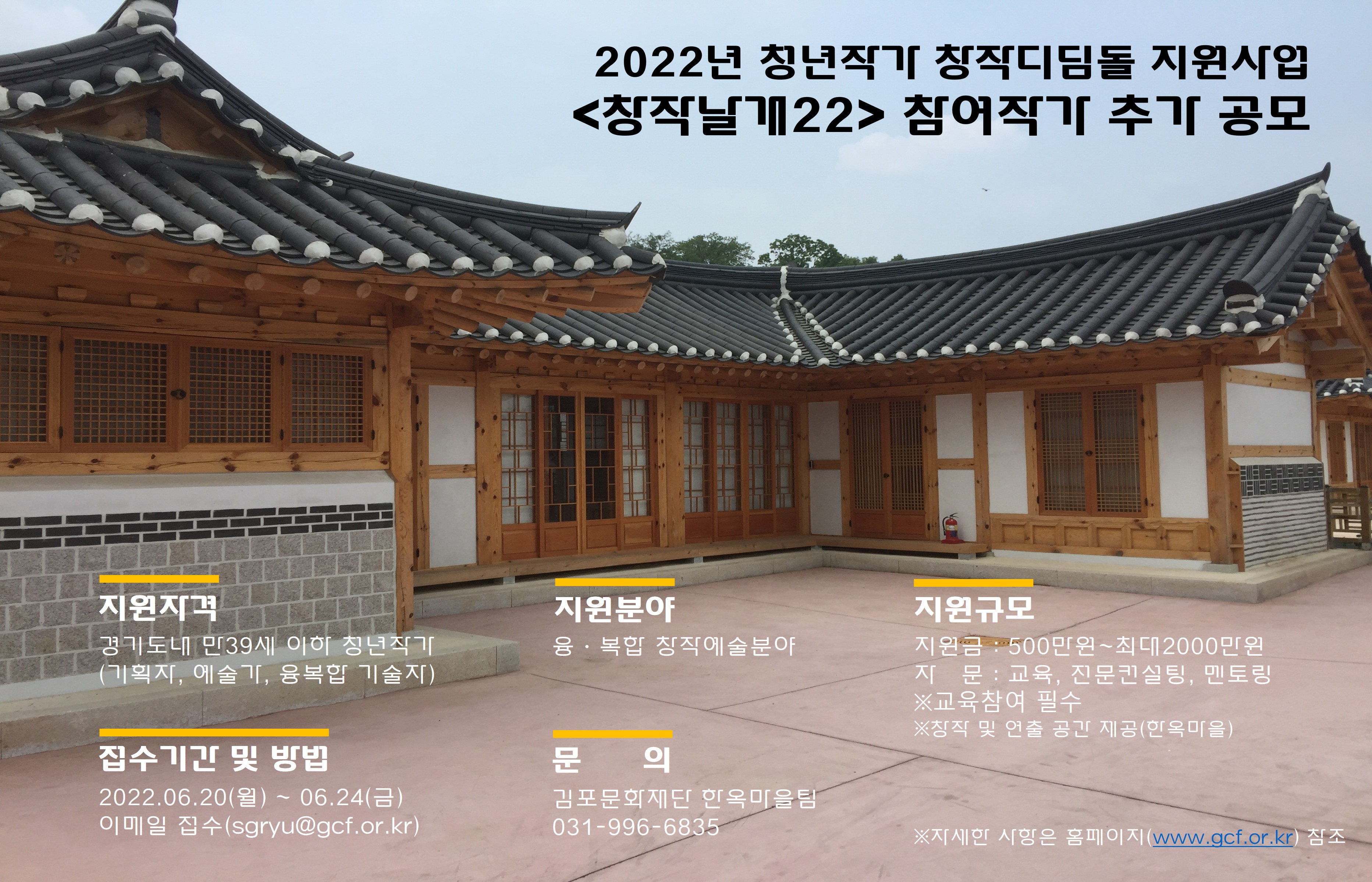 - 2022 청년작가 창작 디딤돌 지원사업 「창작날개22」 참여작가(기획자, 예술가, 융·복합기술자) 추가모집 -